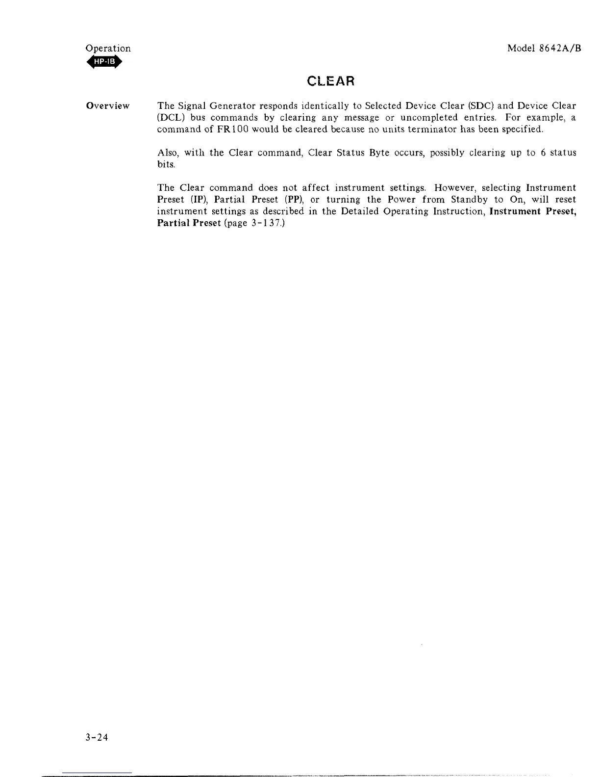 Overview The Signal Generator responds identically to Selected Device Clear (SDC) and Device Clear