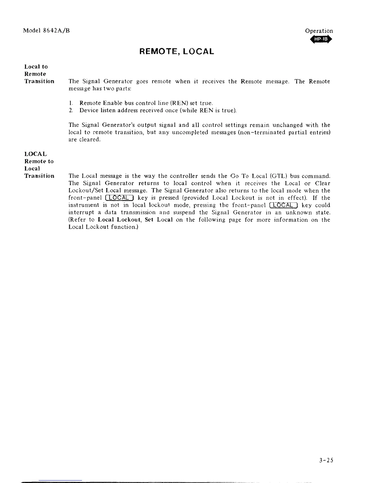 Lockout/Set Local message. The Signal Generator also returns to the local mode when the