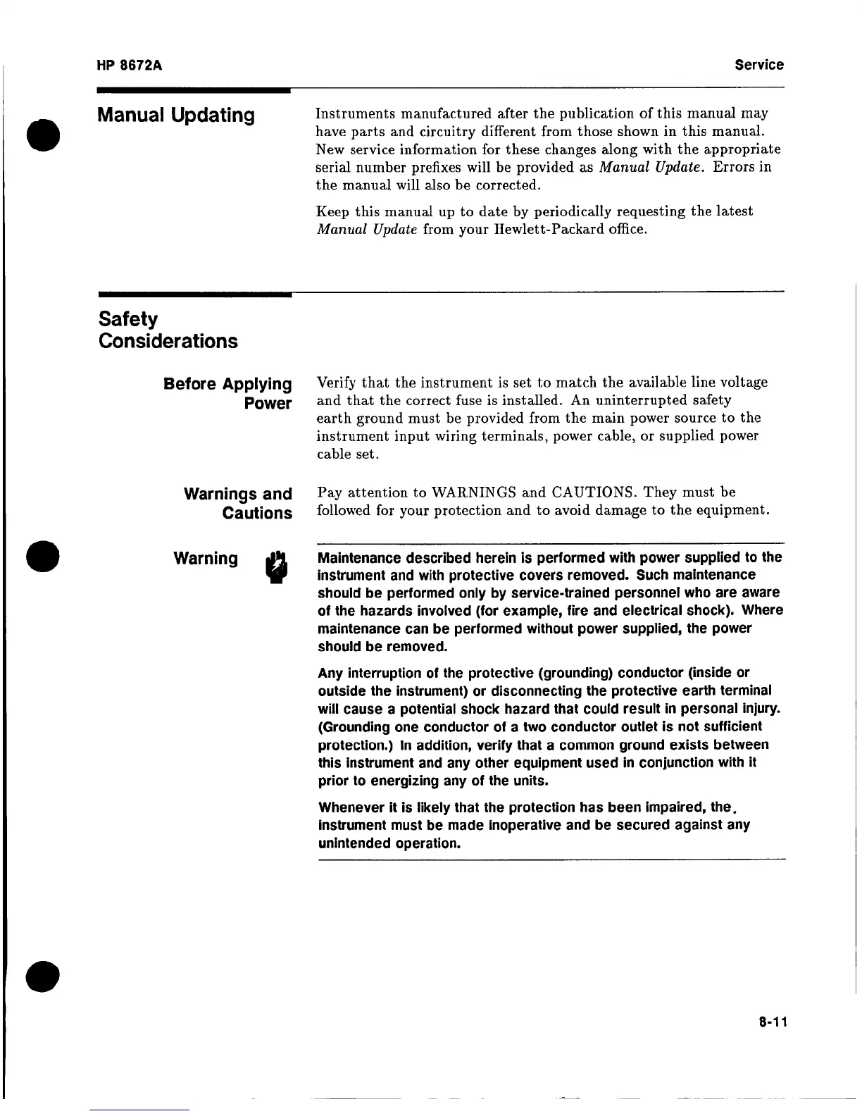 HP 8672a - Safety Precautions