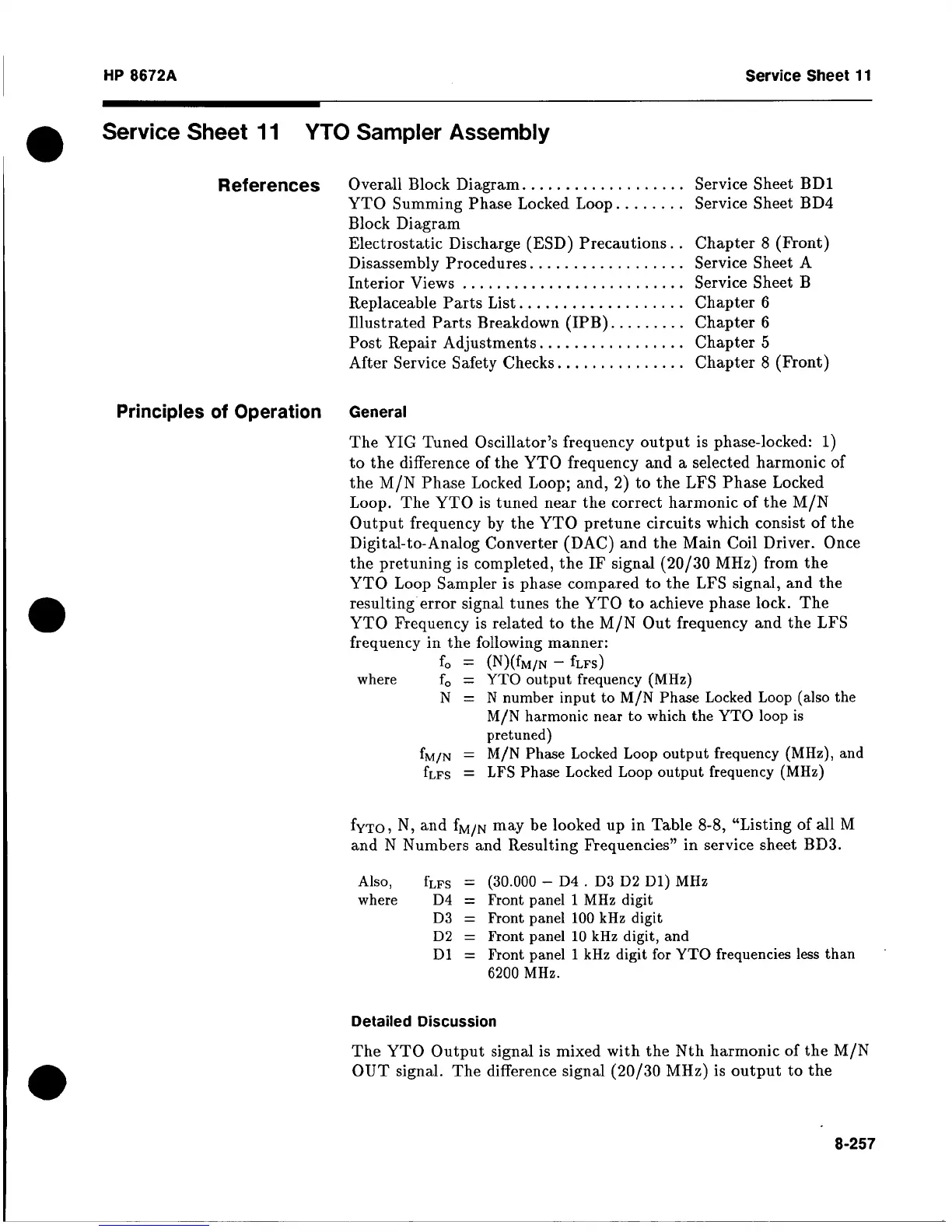 HP 8672a - Service Sheet 11 YTO Sampler Assembly; References; Principles of Operation