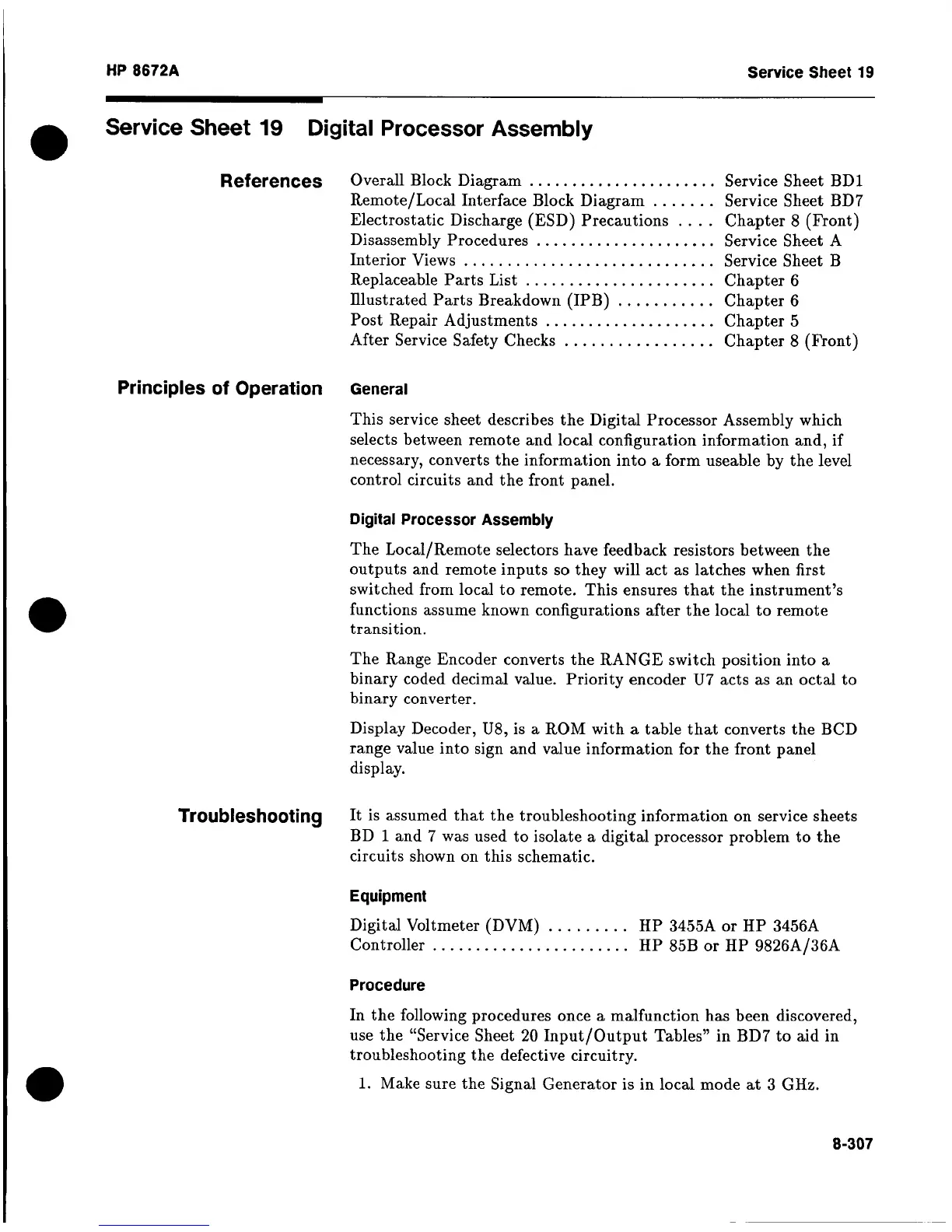 HP 8672a - Service Sheet 19 Digital Processor Assembly; References; Principles of Operation