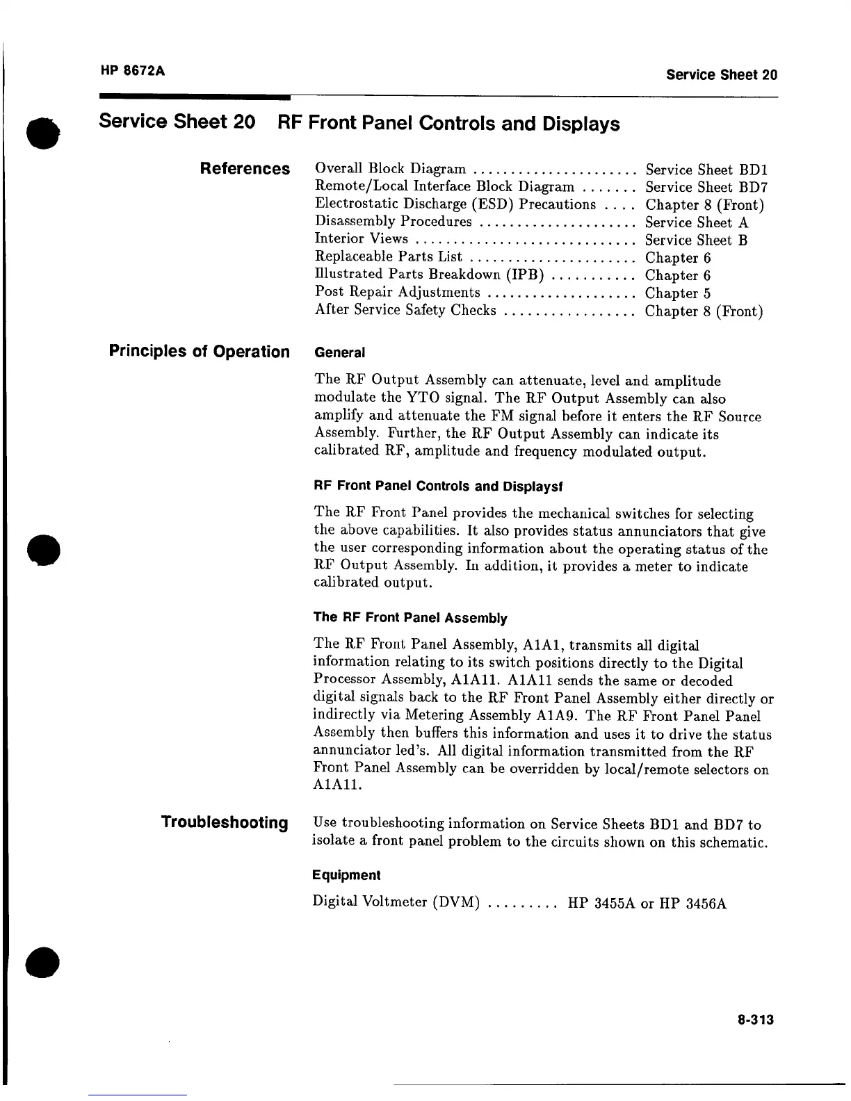 HP 8672a - Service Sheet 20 RF Front Panel Controls and Displays; References; Principles of Operation