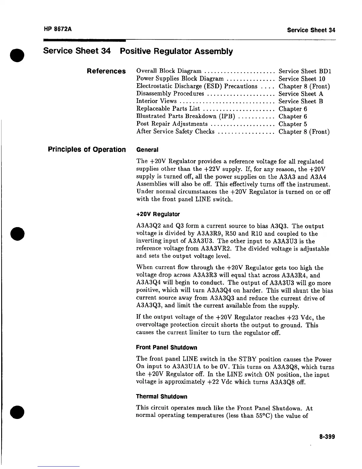HP 8672a - Service Sheet 34 Positive Regulator Assembly; References; Principles of Operation