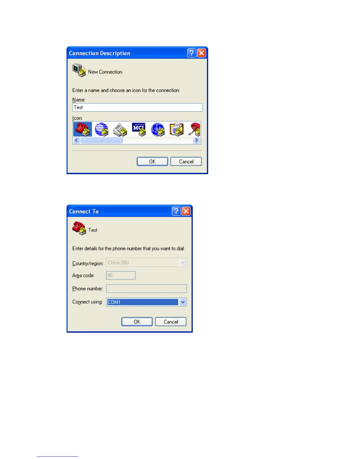 3. Select the serial port to be used from the Connect using list, and click OK.