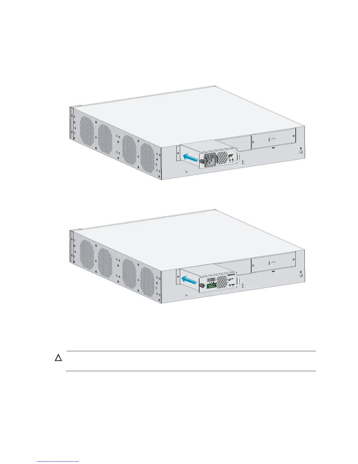supply with another hand, push the power supply into the slot along the guide rails until the power