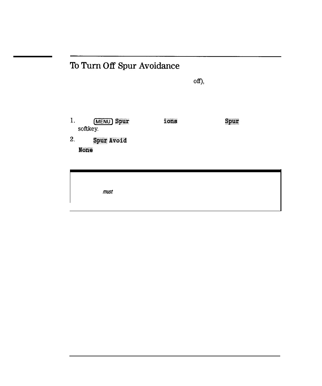 sweep is not interrupted when this feature is off, turn off spur avoidance to