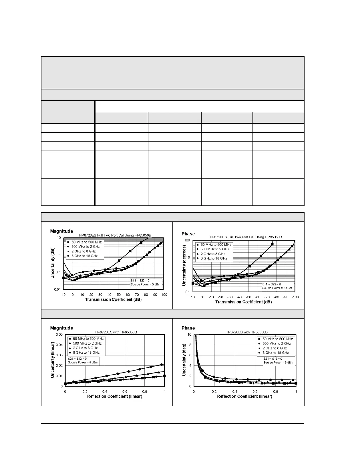 Magnitude (dB) ±(0.006 + .02/°C) ±(0.006 + .03/°C) ±(0.017 + .03/°C) ±(0.047 + .04/°C)