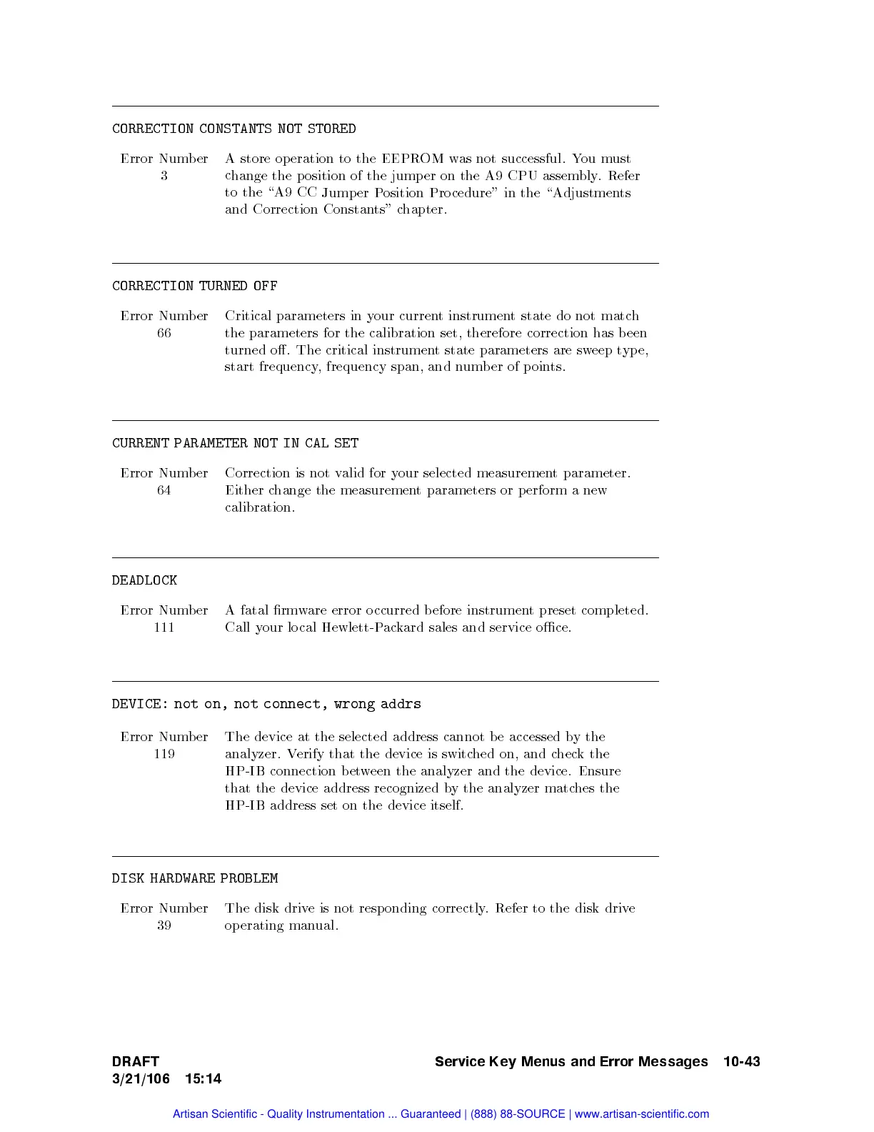 Service Key Menus and Error Messages 10-43
