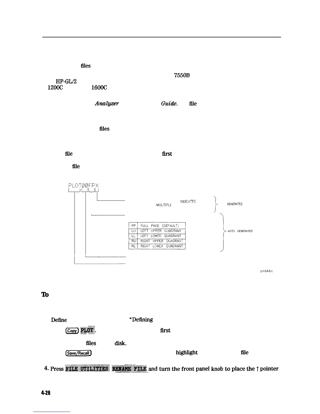 The following procedures show you how to store plot files on a LIF formatted disk. A naming