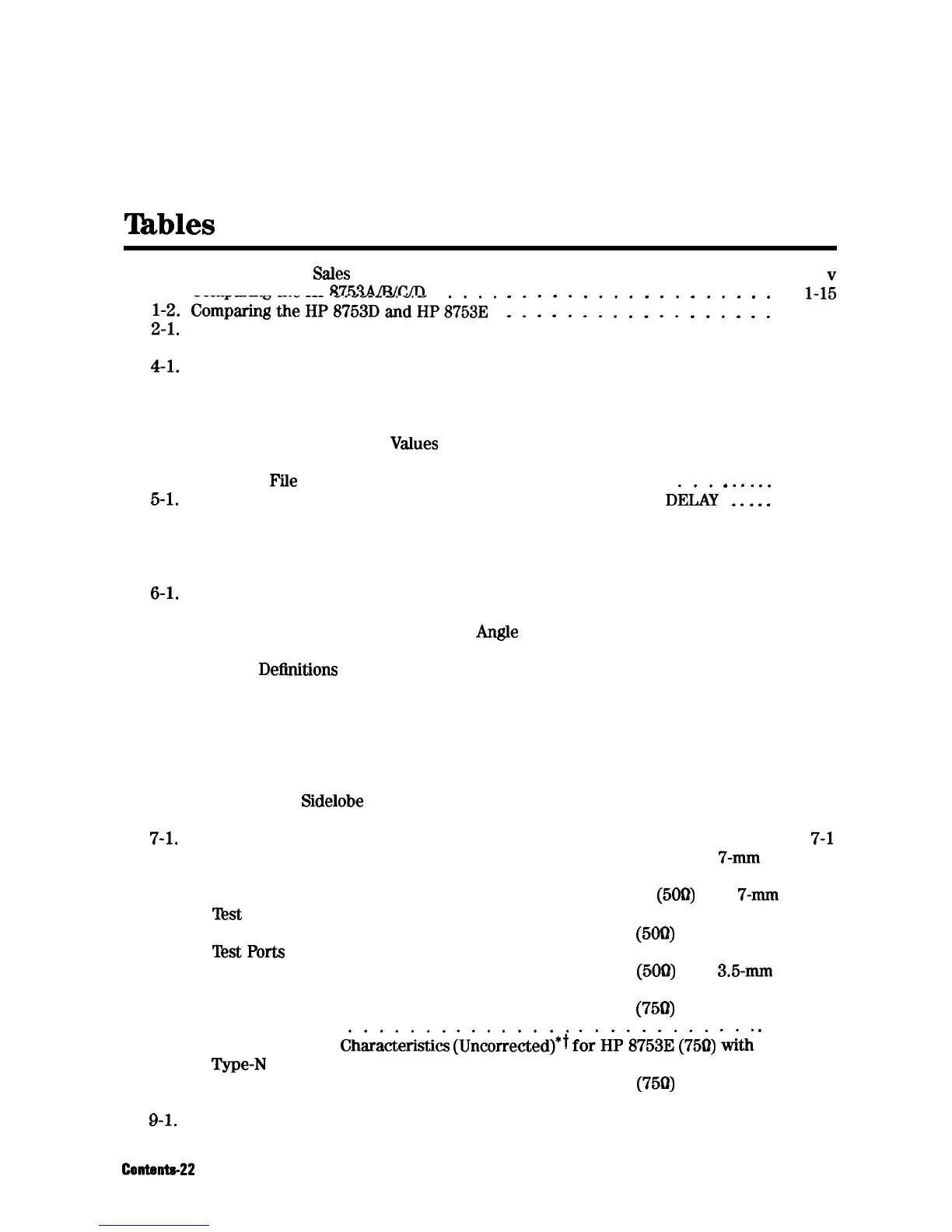 7-3. Measurement Port Characteristics (Uncorrected*) for HP 8753E