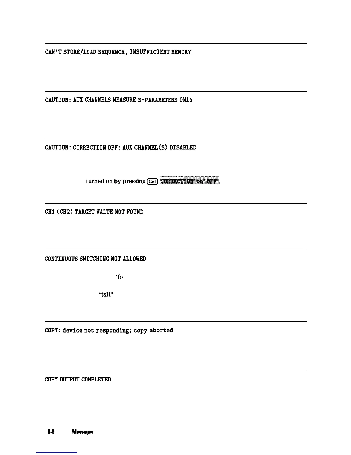 Error Number This message is displayed when correction is forced off due to a stimulus