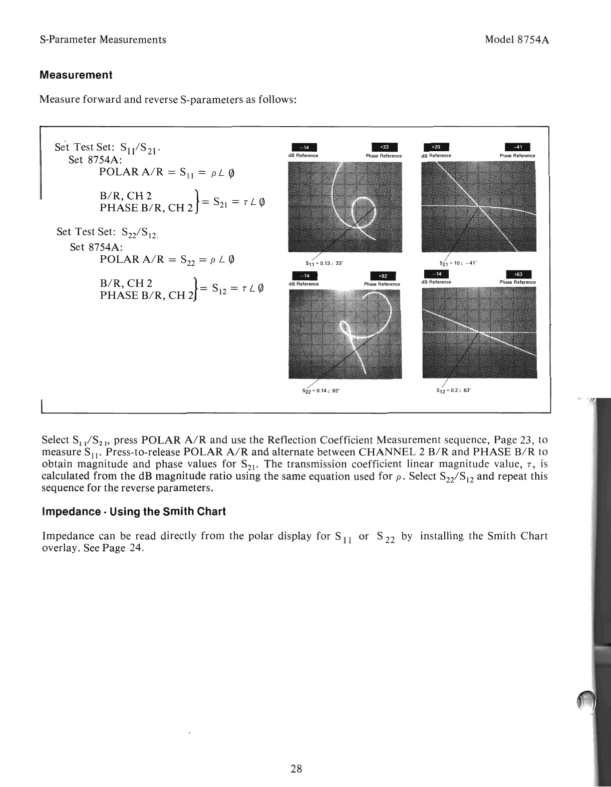 HP 8754A - Measurement; Impedance - Using the Smith Chart
