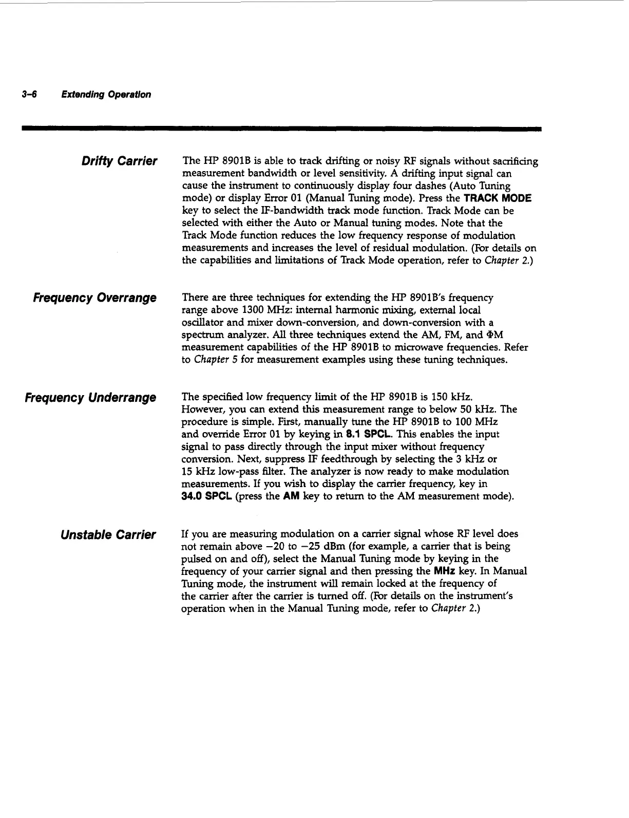 measurements. If you wish to display the carrier frequency, key in