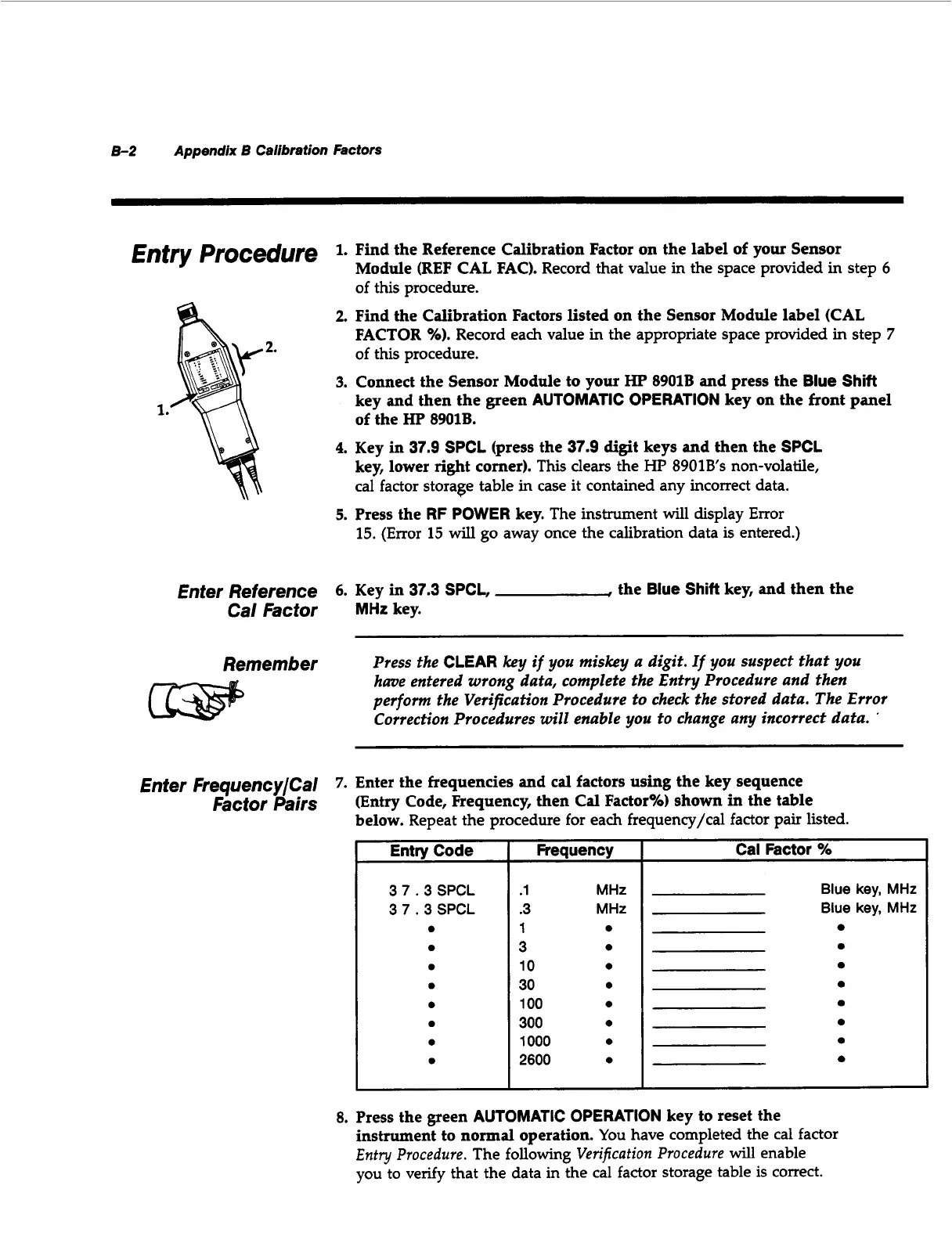 (Entry Code, Frequency, then Cal Factor%) shown in the table