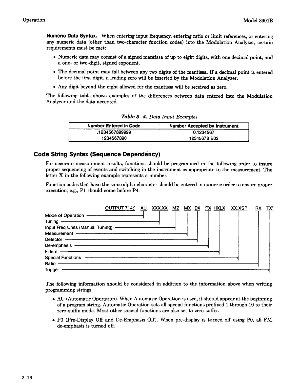 (other than two-character function codes) into the Modulation Analyzer, certain