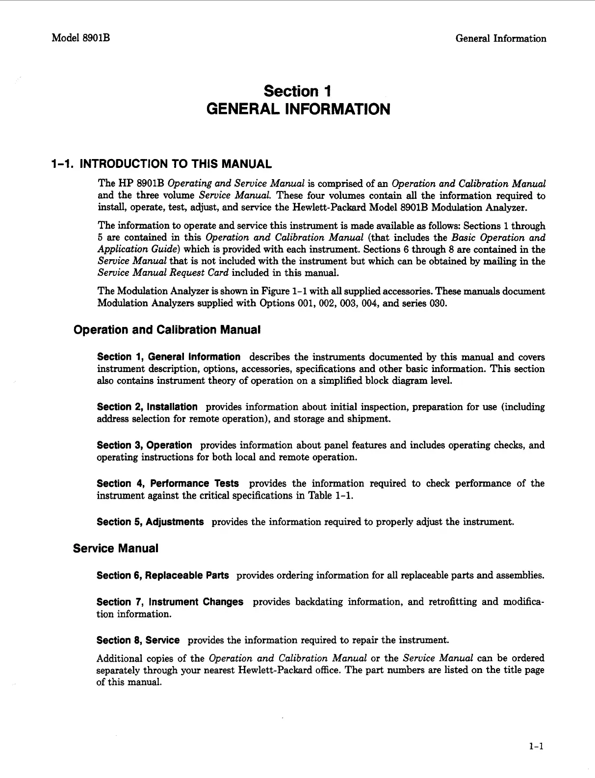 adjust, and service the Hewlett-Packard Model 8901B Modulation Analyzer.