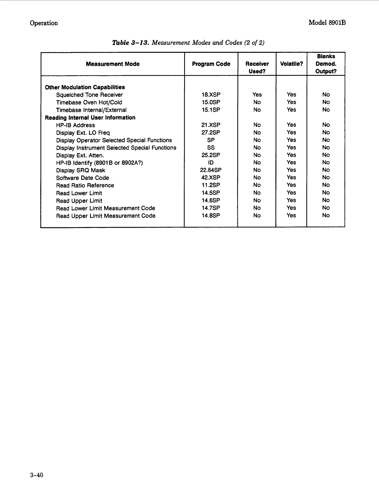 Measurement Modes and Codes