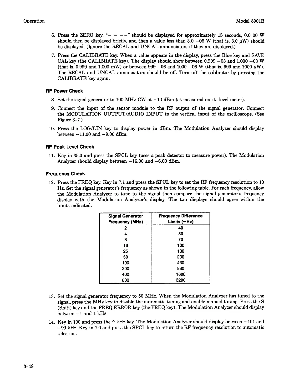 display with the Modulation Analyzer’s display. The two displays should agree within the