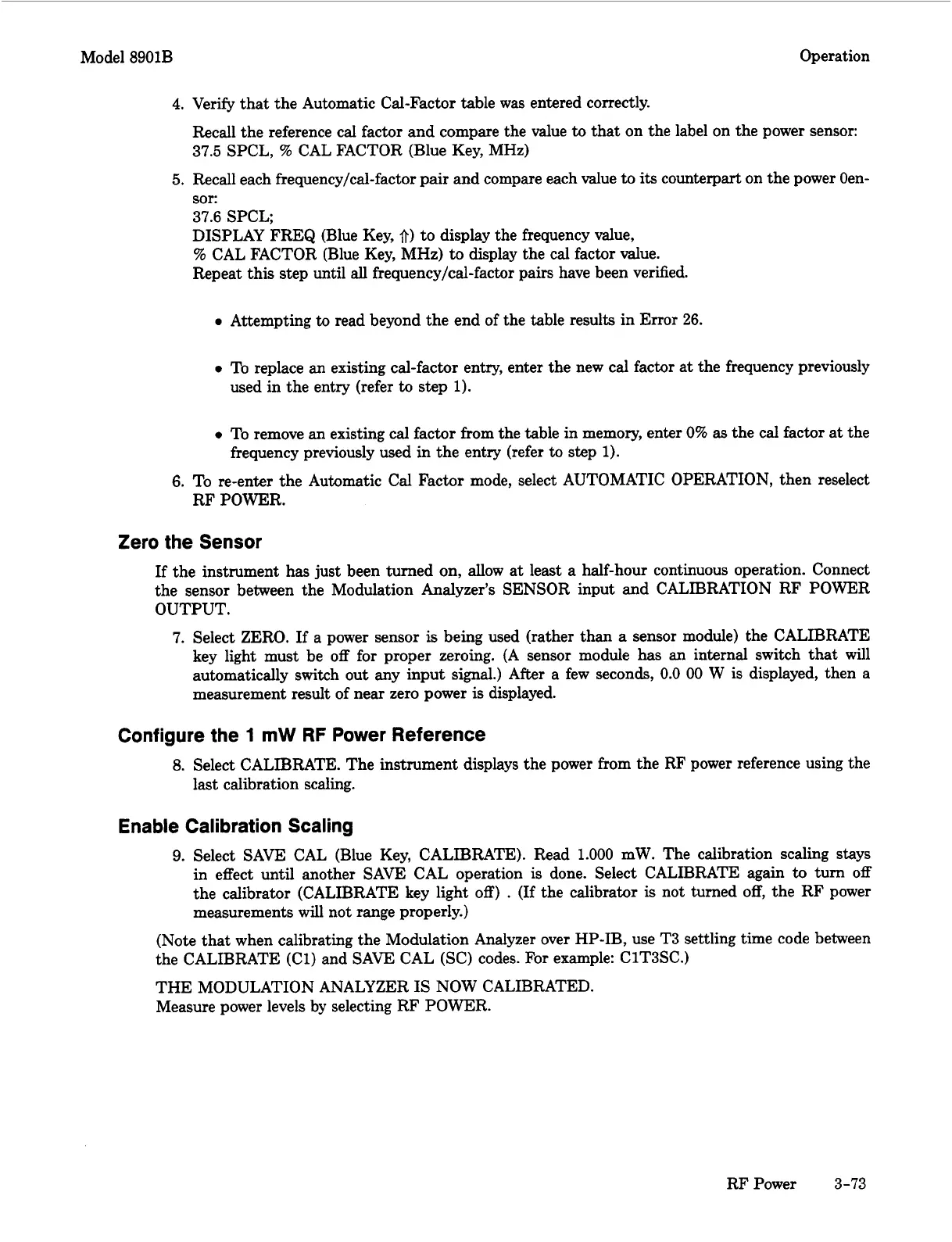 existing cal-factor entry, enter the new cal factor at the frequency previously
