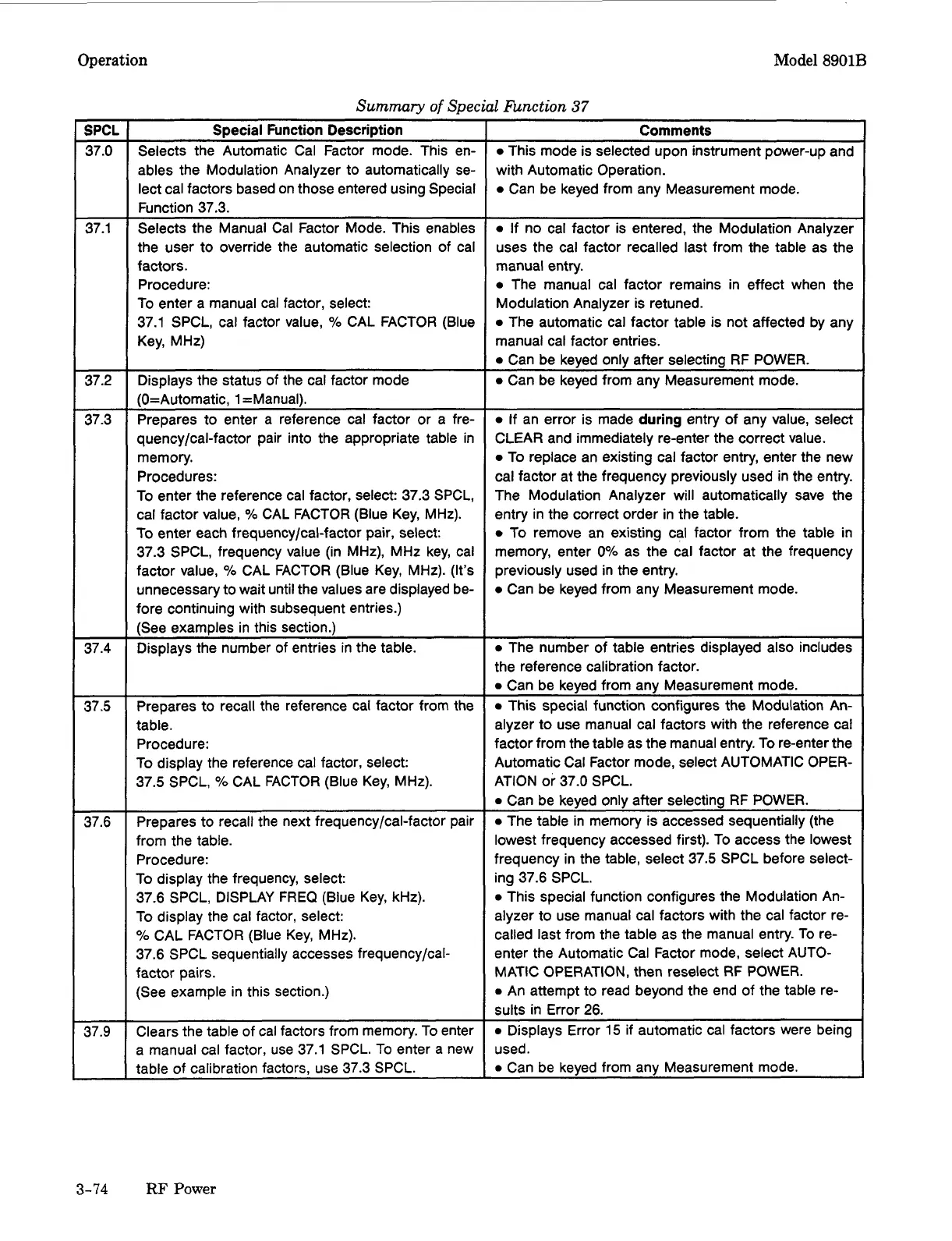 37.3  SPCL, frequency value  (in MHz), MHz key, cal