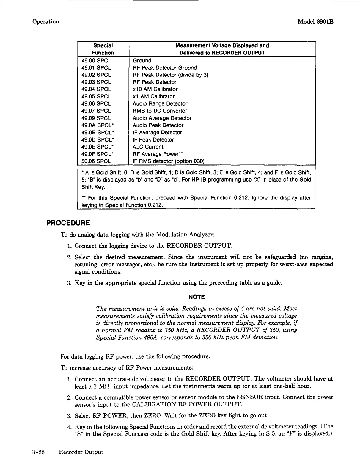 Key in the following Special Functions in order and record the external dc voltmeter readings. (The