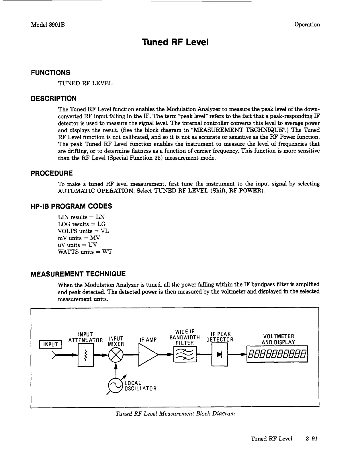 tuned RF level measurement, first tune the instrument to the input signal by selecting