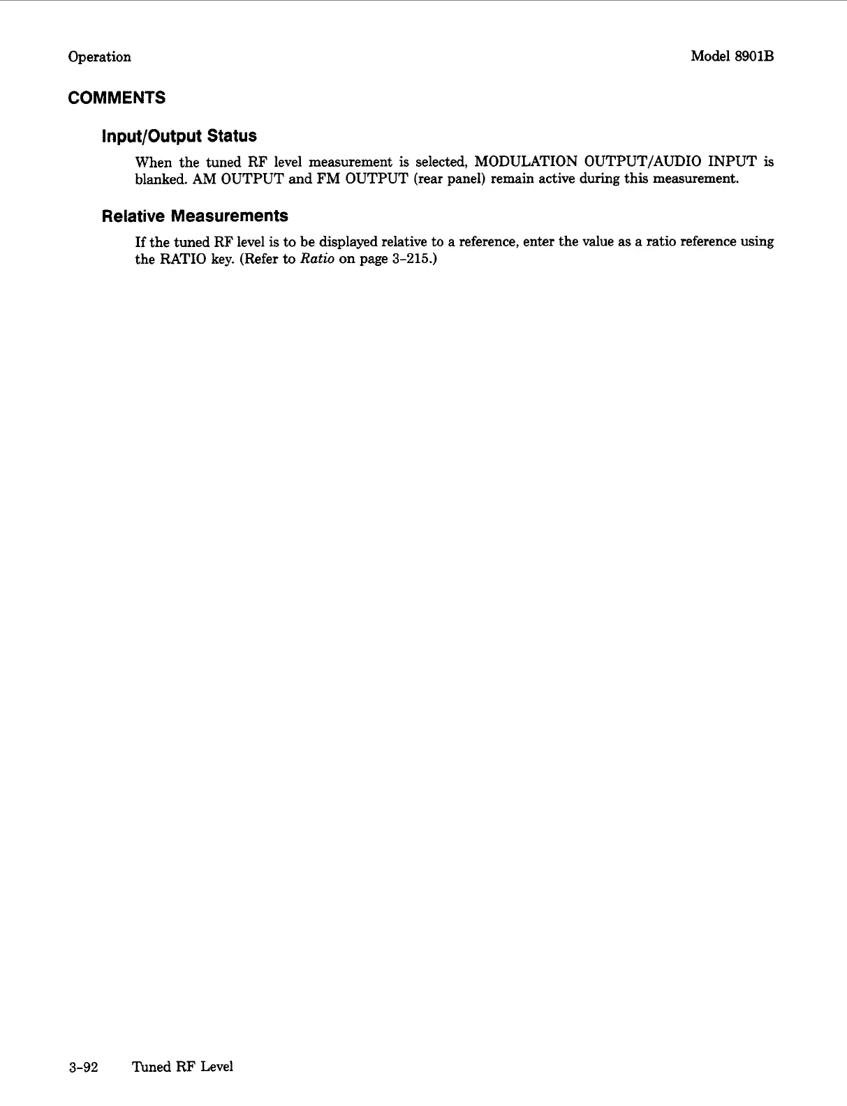 When the tuned RF level measurement is selected, MODULATION OUTPUT/AUDIO INPUT