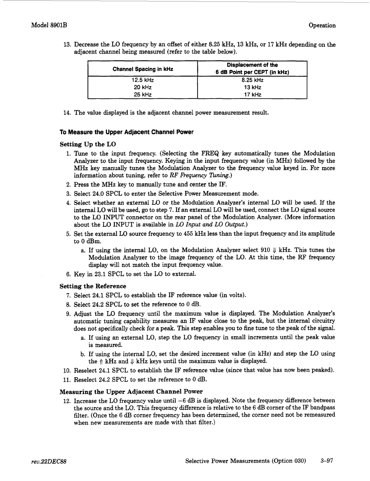 b. If using the internal LO, set the desired increment value (in kHz) and step the
