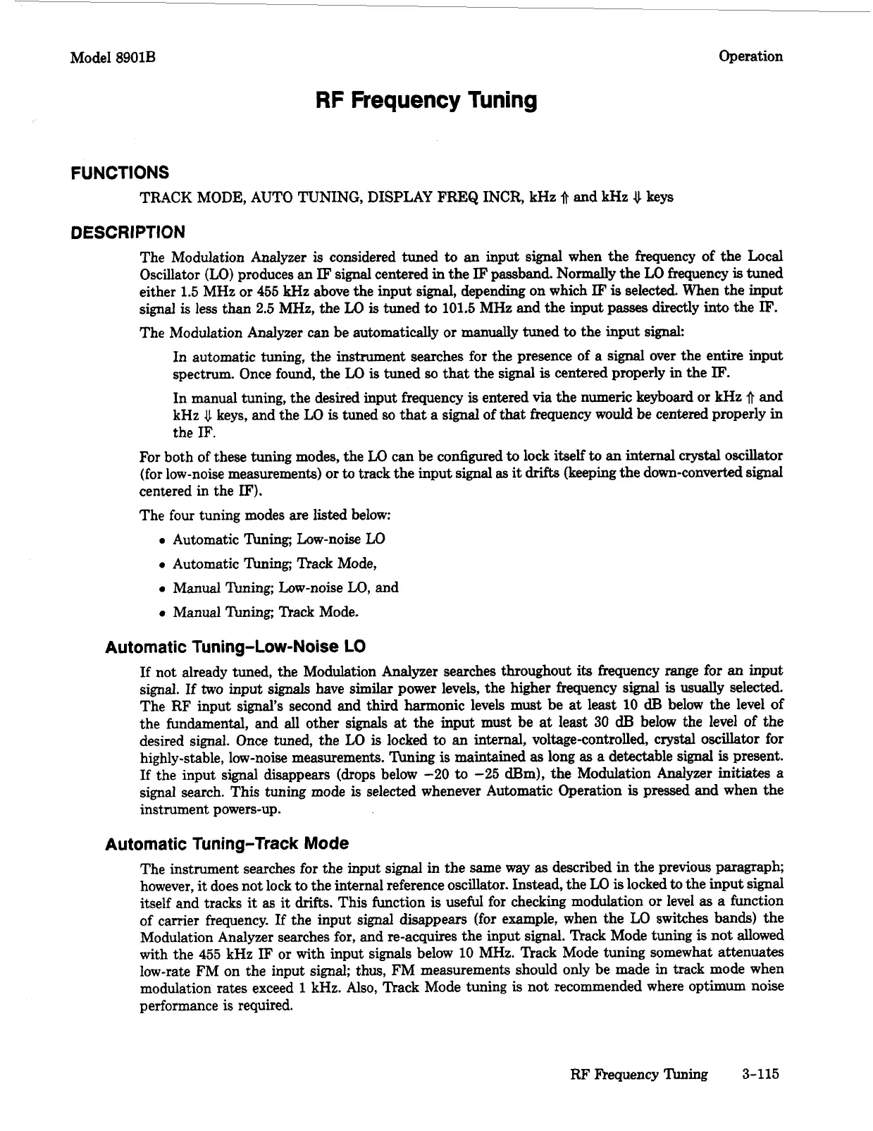 In automatic tuning, the instrument searches for the presence of a signal over the entire input