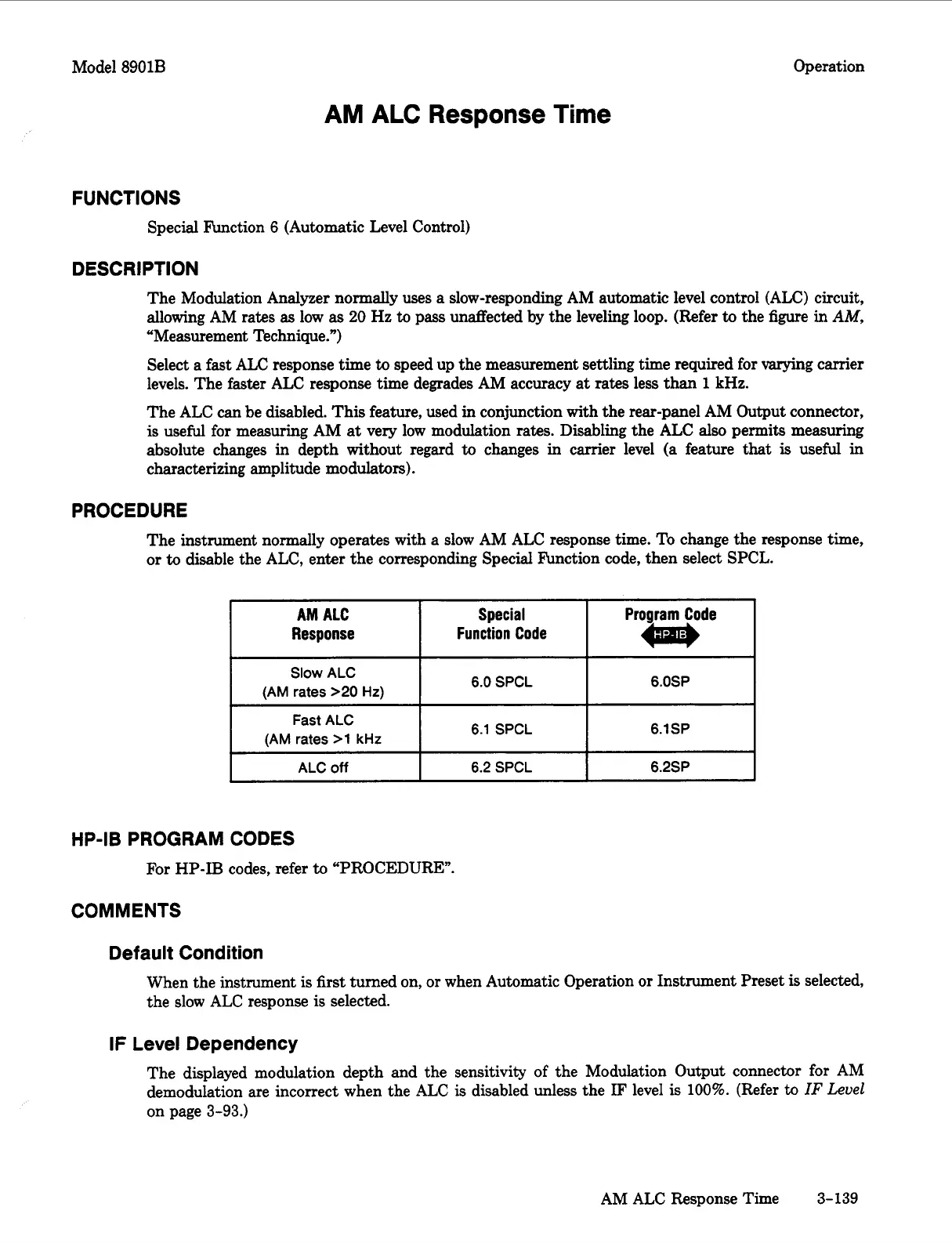 The instrument normally operates with a slow AM ALC response time. To change the response time,