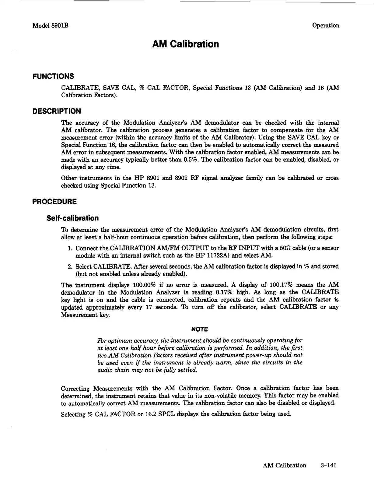 Select CALIBRATE. After several seconds, the AM calibration factor