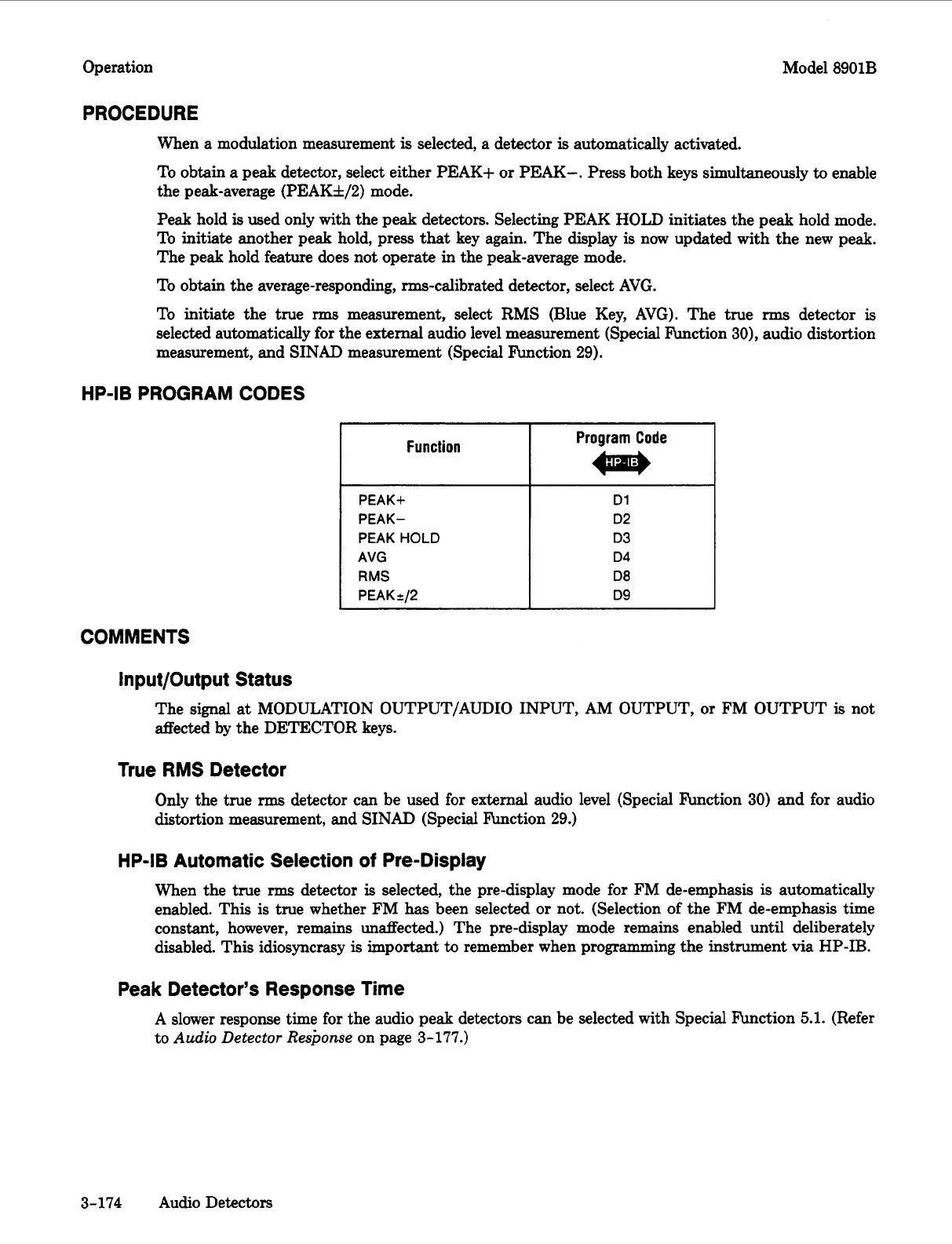 To obtain the average-responding, rms-calibrated detector, select AVG.
