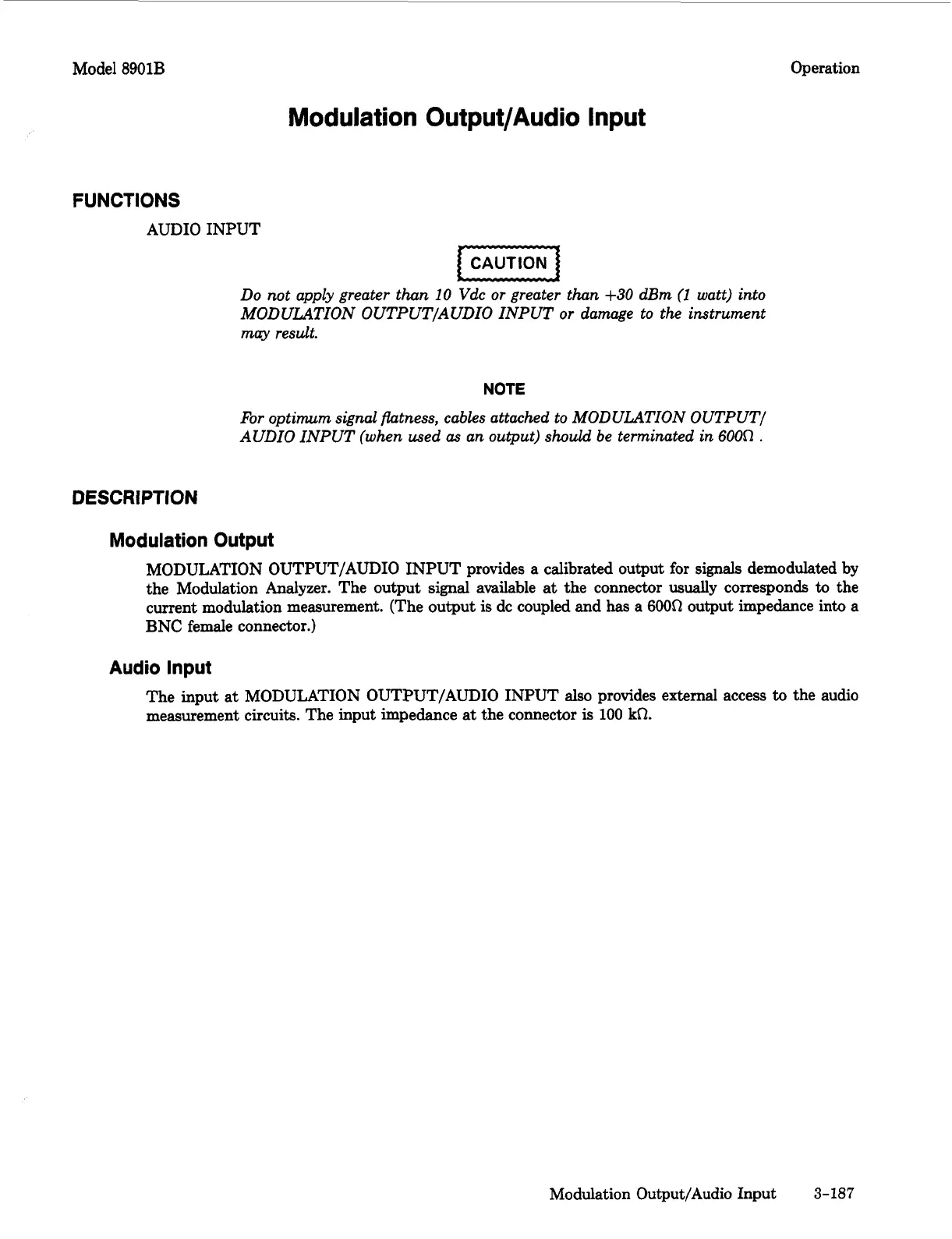 MODULATION OUTPUT/AUDIO INPUT provides a calibrated output