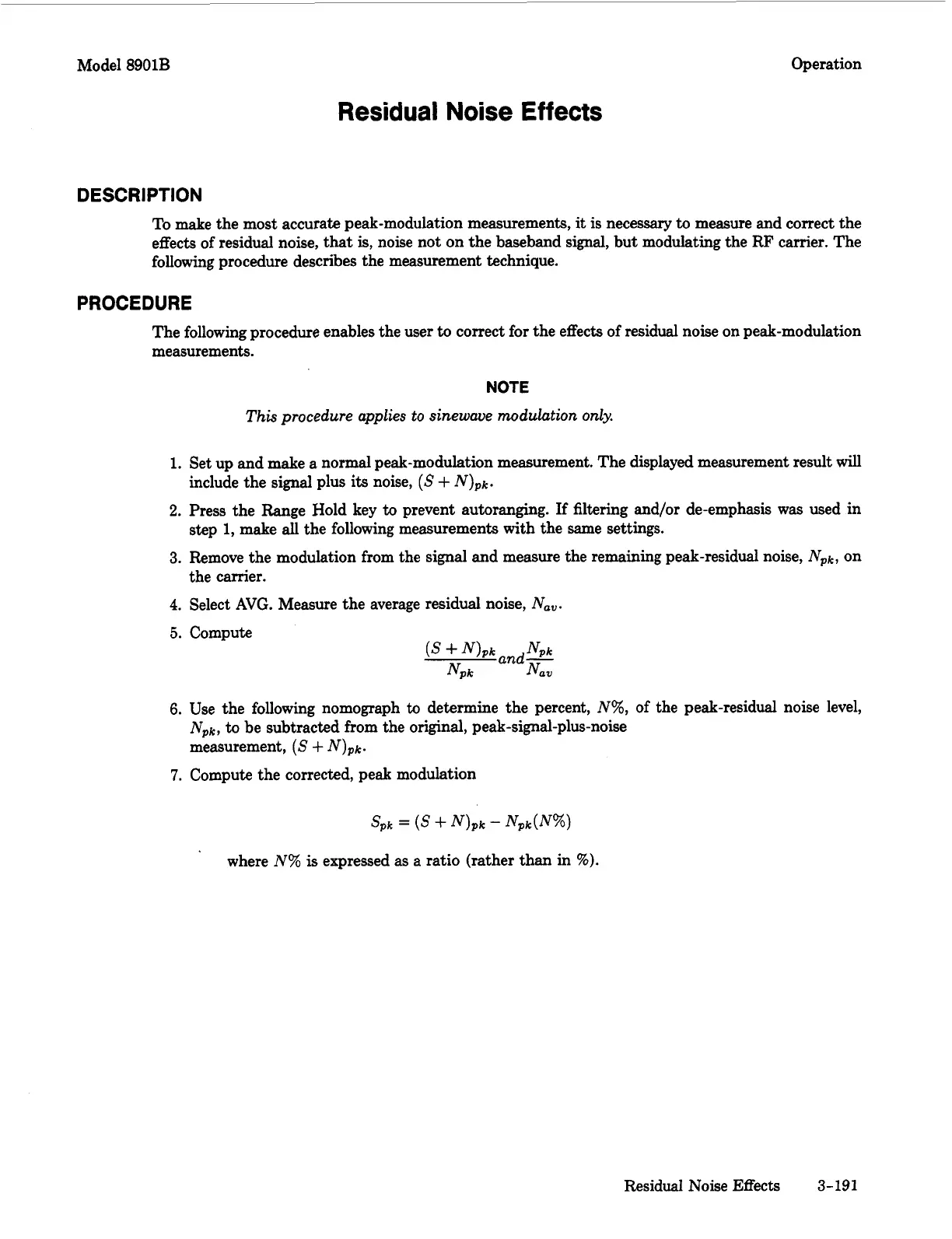 Remove the modulation from the signal and measure the remaining peak-residual noise,