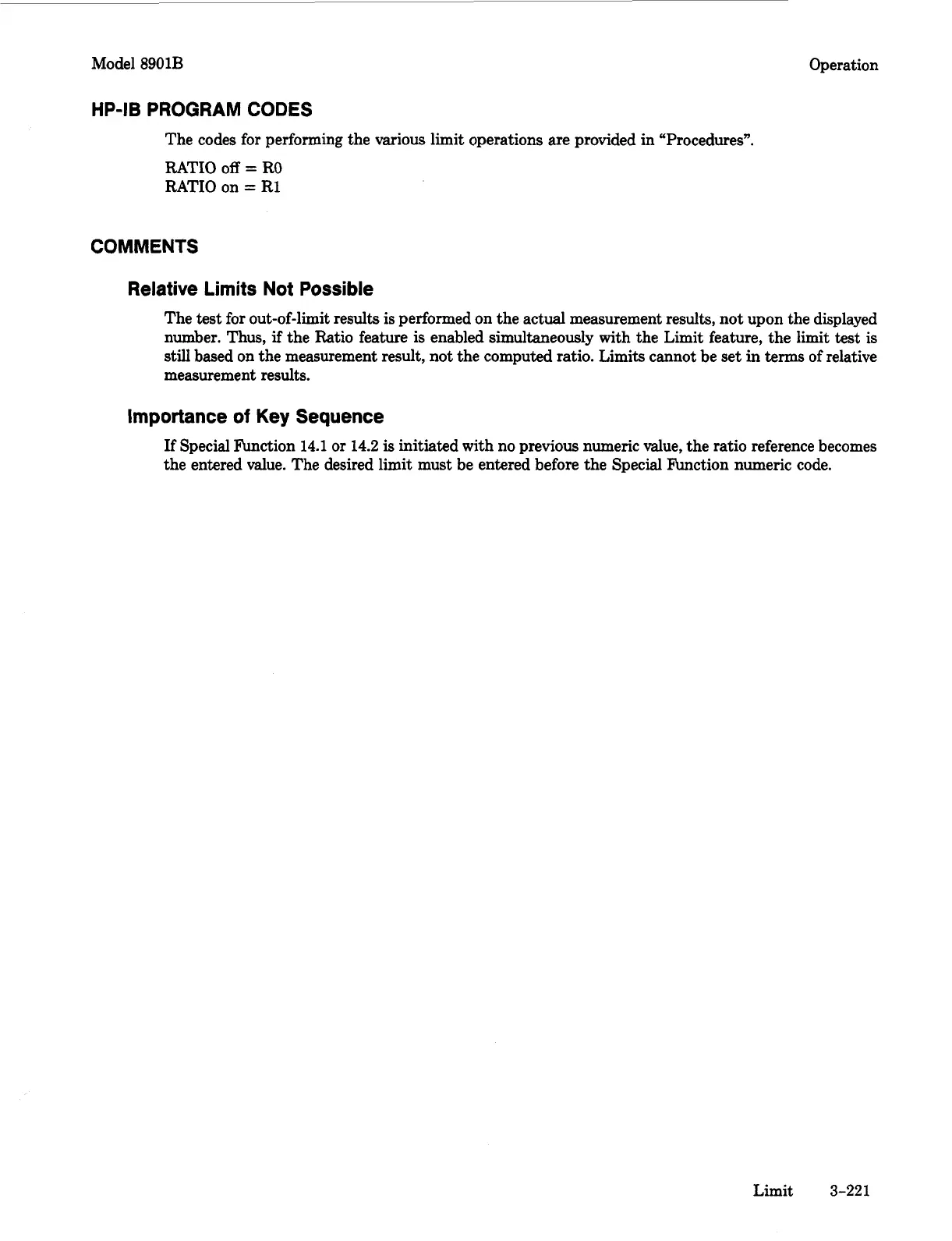 the entered value. The desired limit must be entered before the Special Function numeric code.