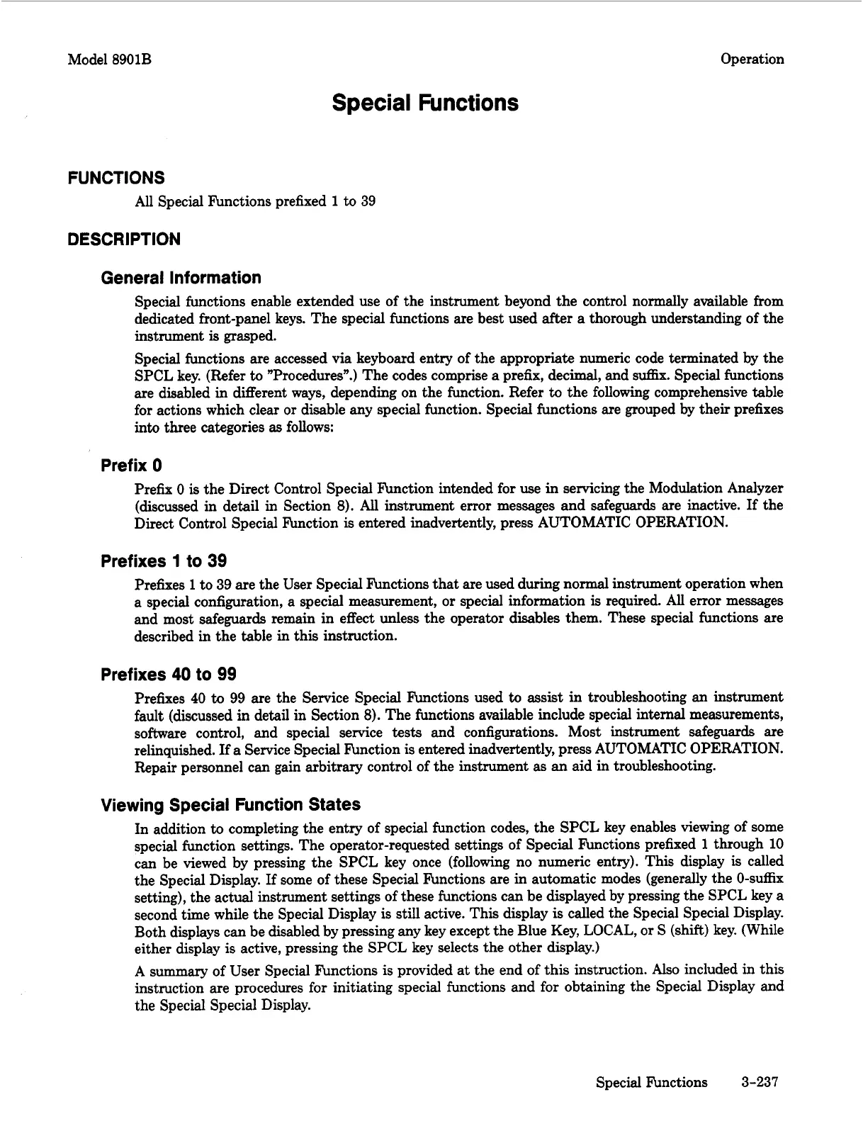 instruction are procedures for initiating special functions and for obtaining the Special Display and