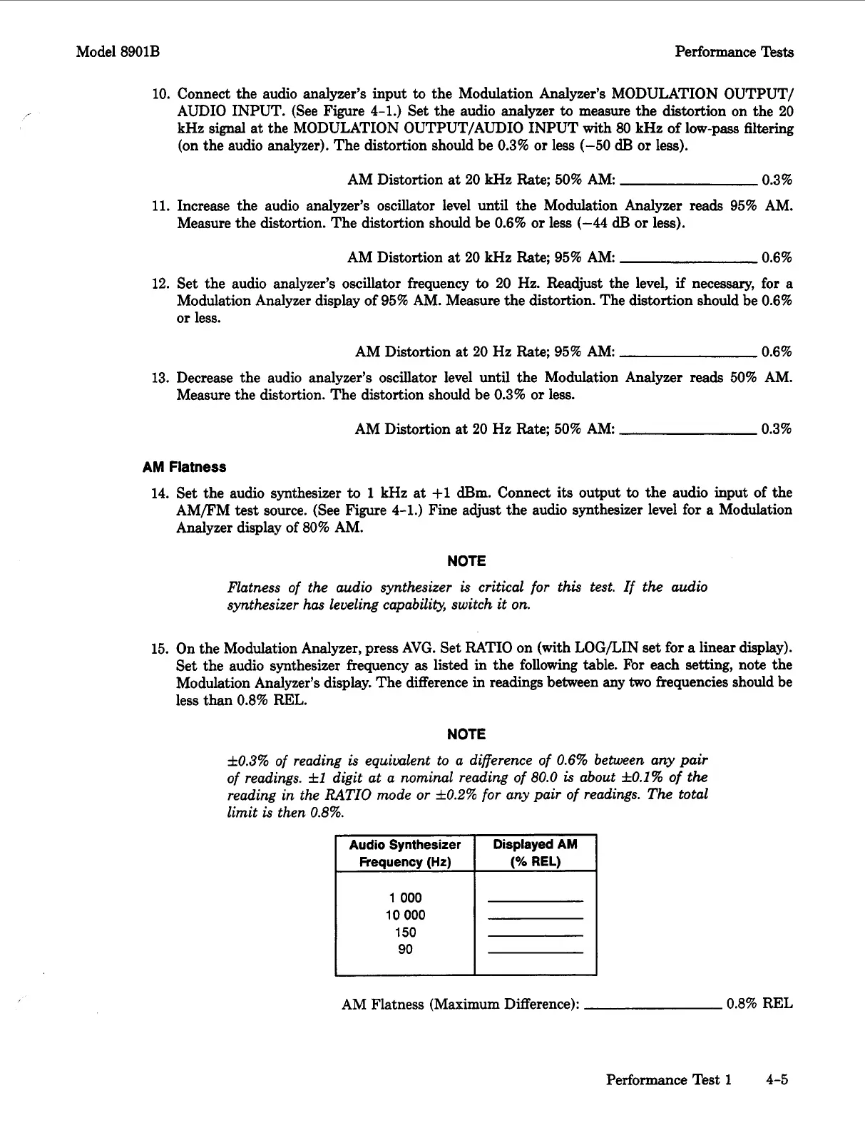 source. (See Figure 4-1.) Fine adjust the audio synthesizer level for a Modulation