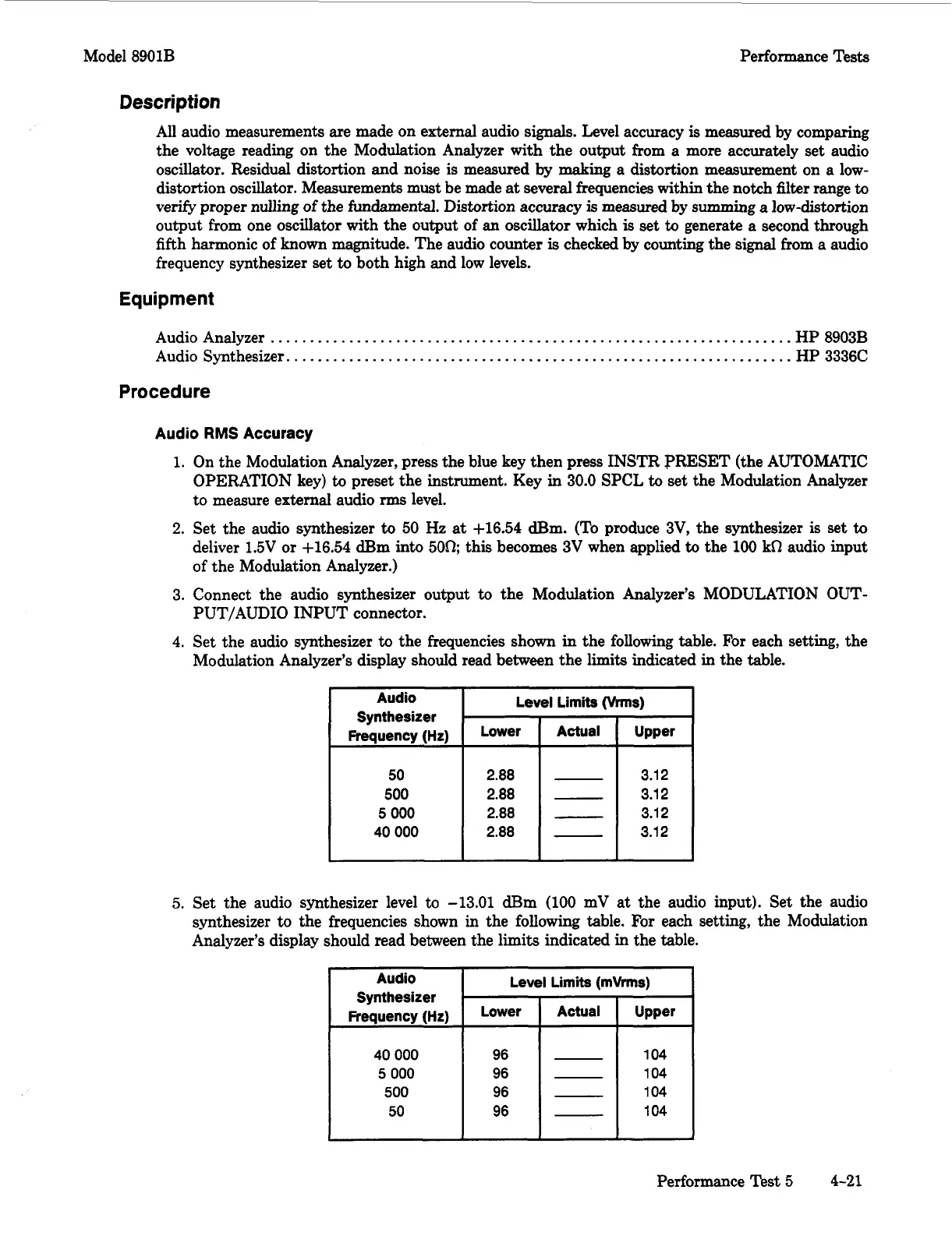Model 8901B Performance Tests