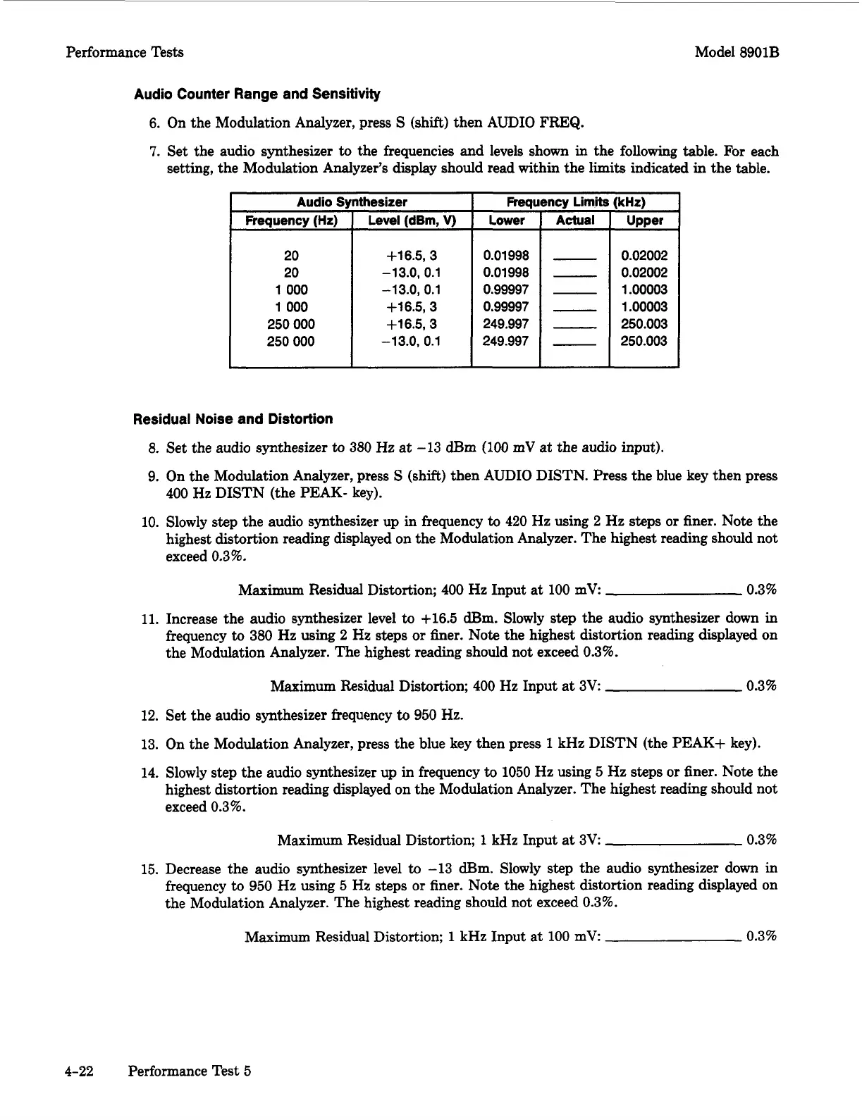 setting, the Modulation Analyzer’s display should read within the limits indicated in the table.