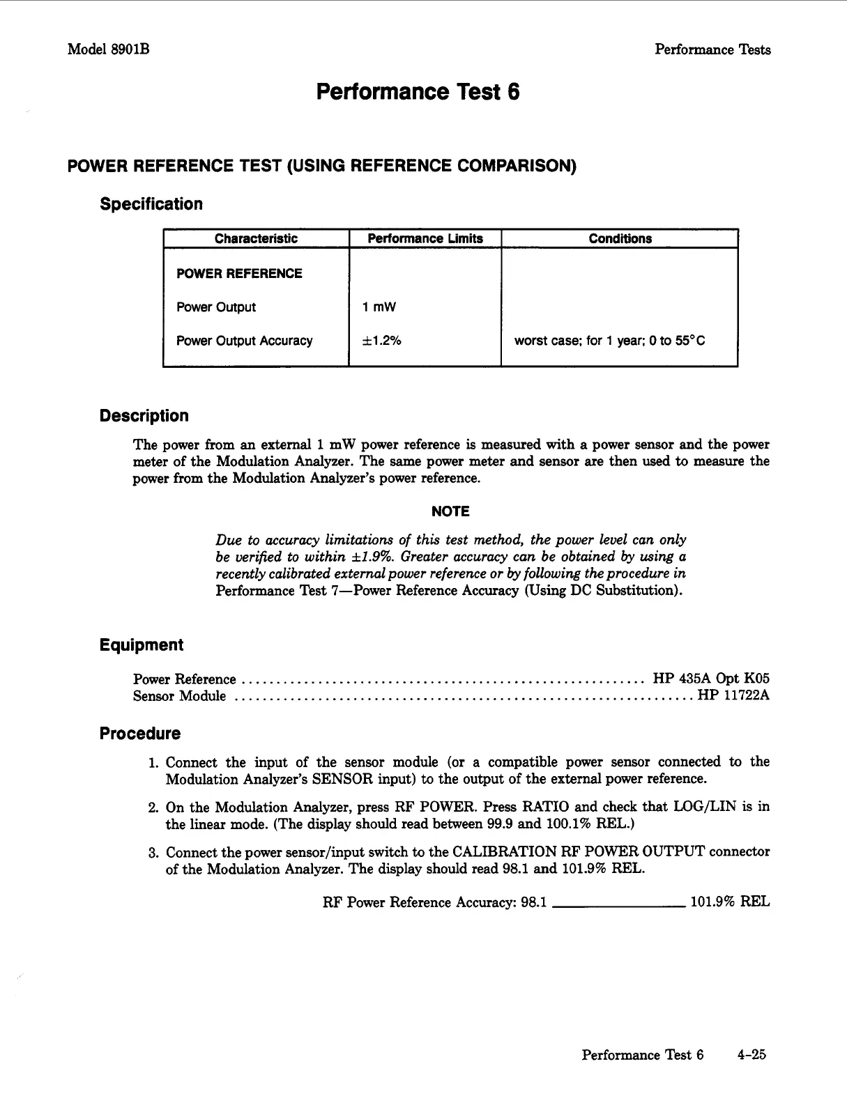 RF Power Reference Accuracy: 98.1