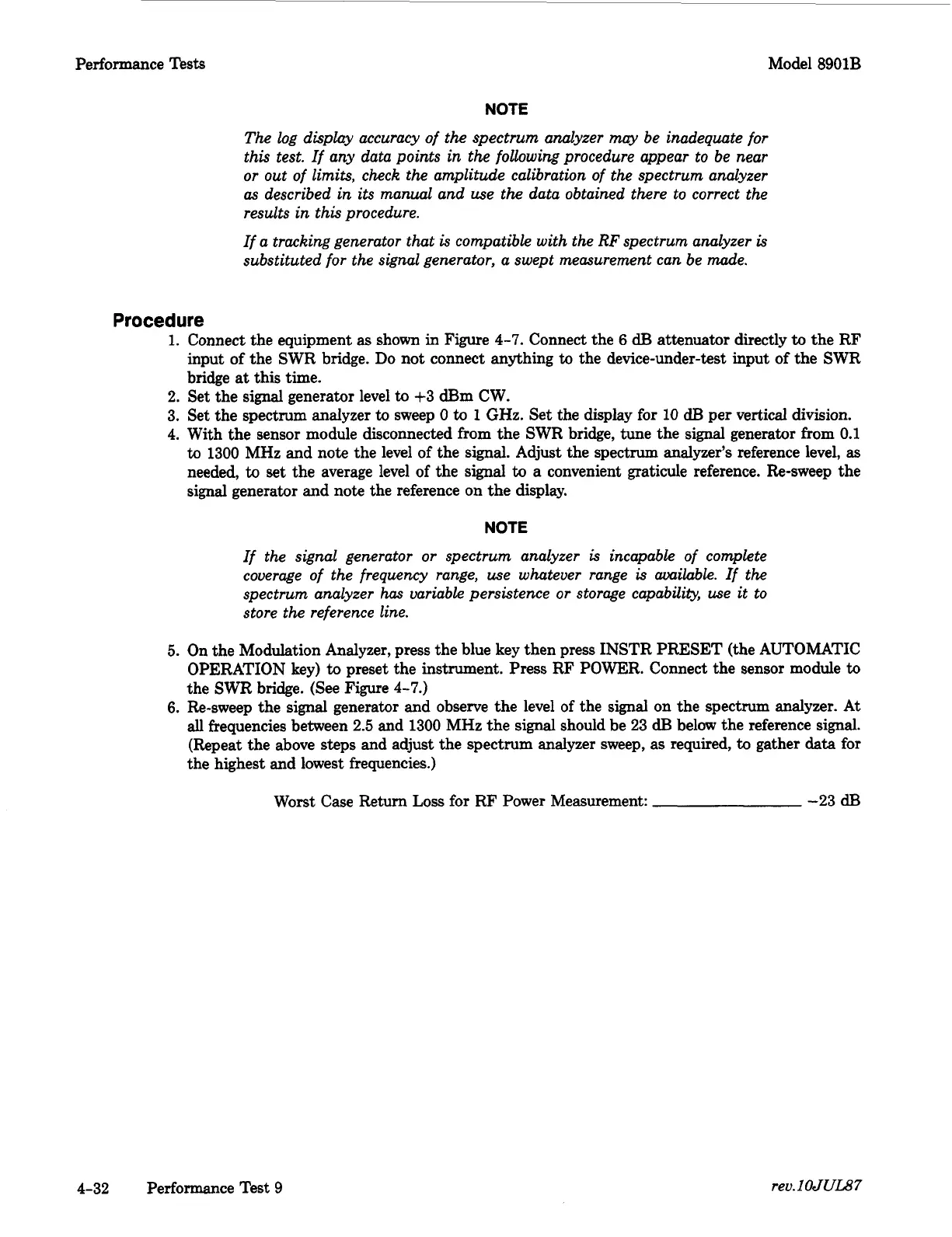 out of limits, check the amplitude calibration of the spectrum analyzer