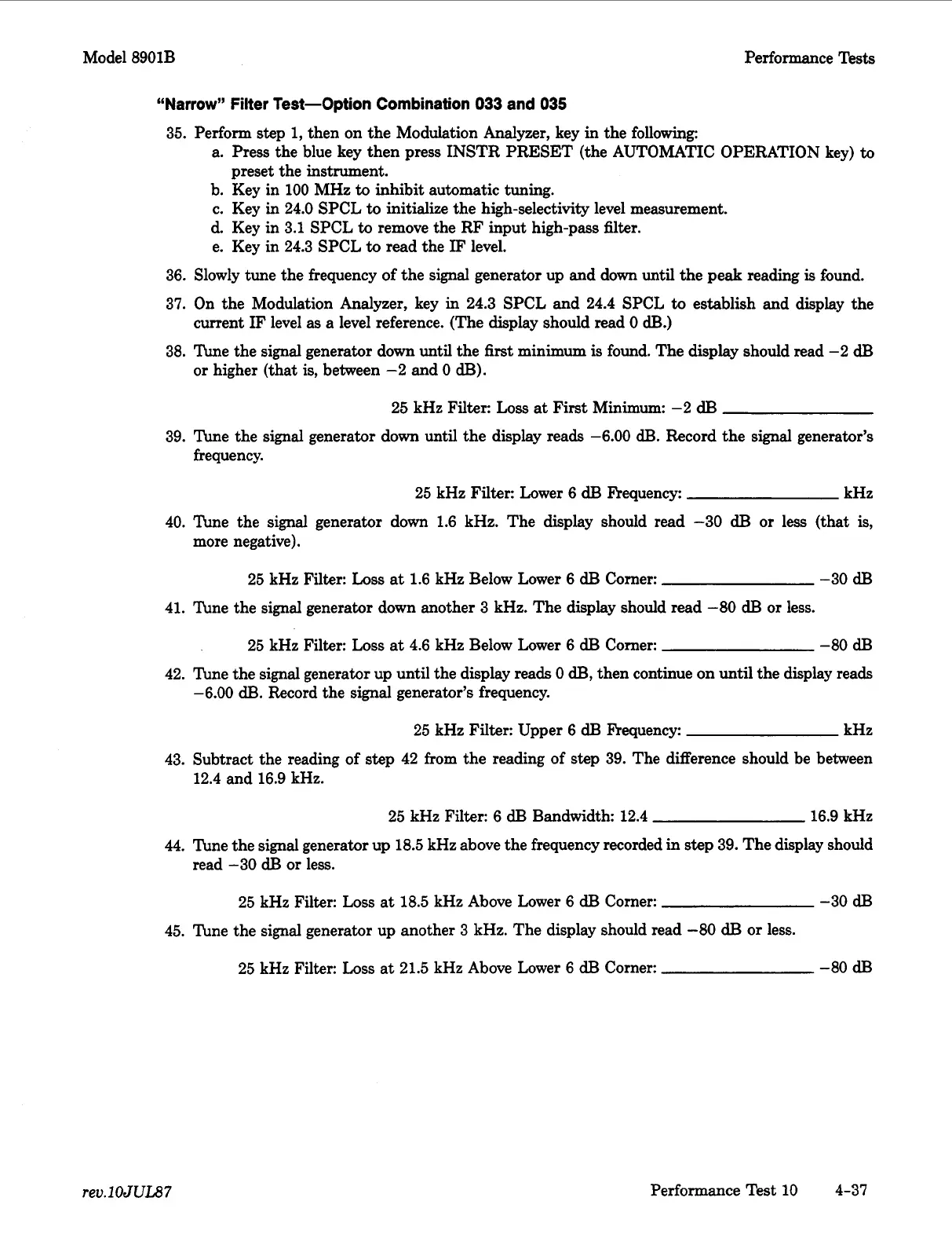 then on the Modulation Analyzer, key in the following: