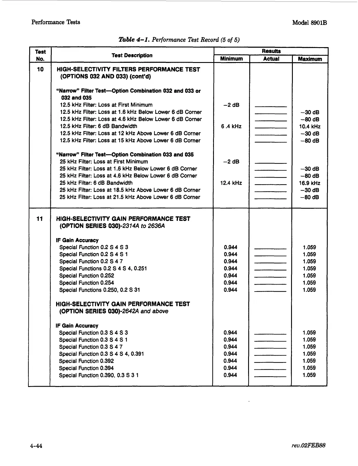 HIGH-SELECTIVITY GAIN PERFORMANCE TEST