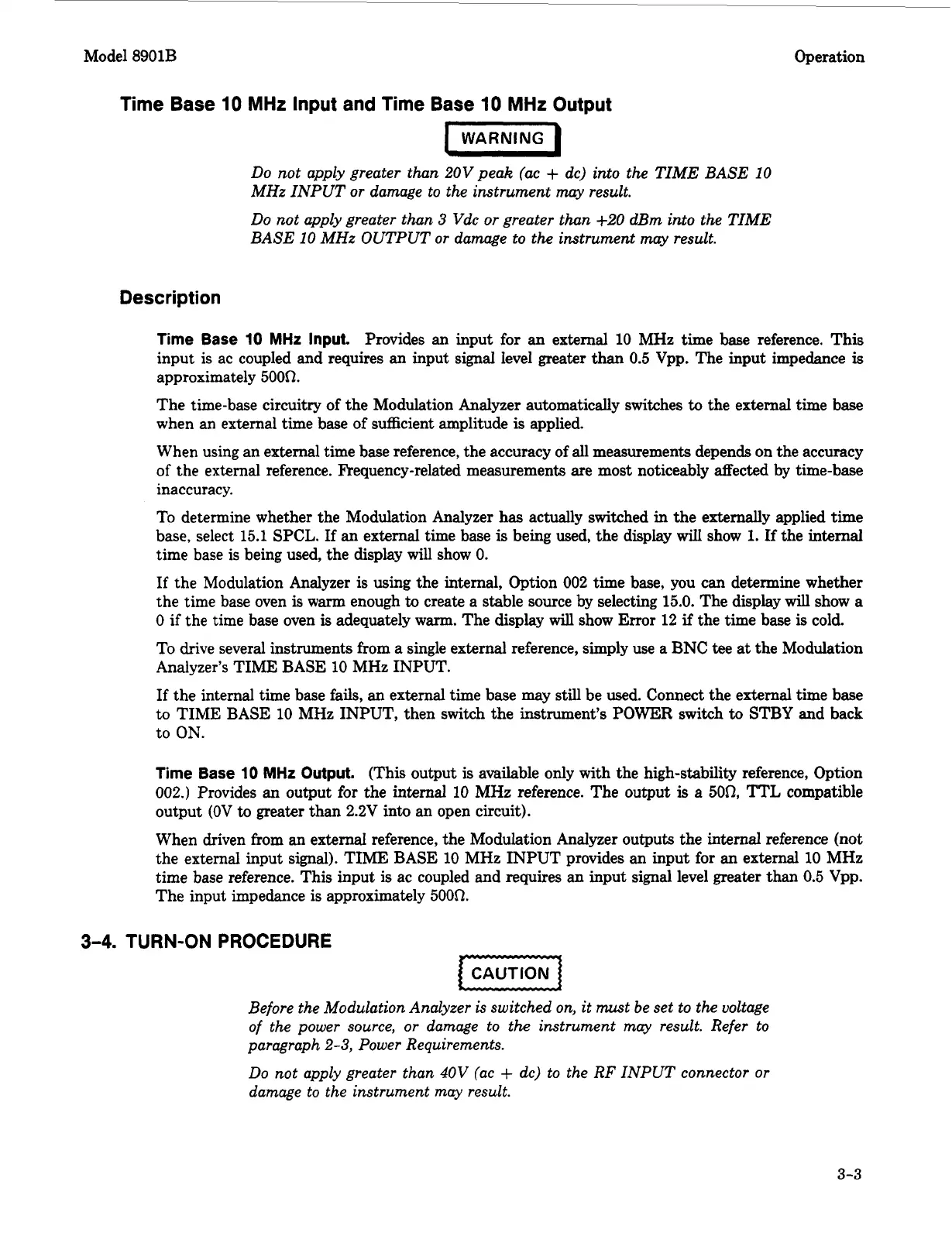 the external input signal). TIME BASE 10 MHz INPUT provides an input for
