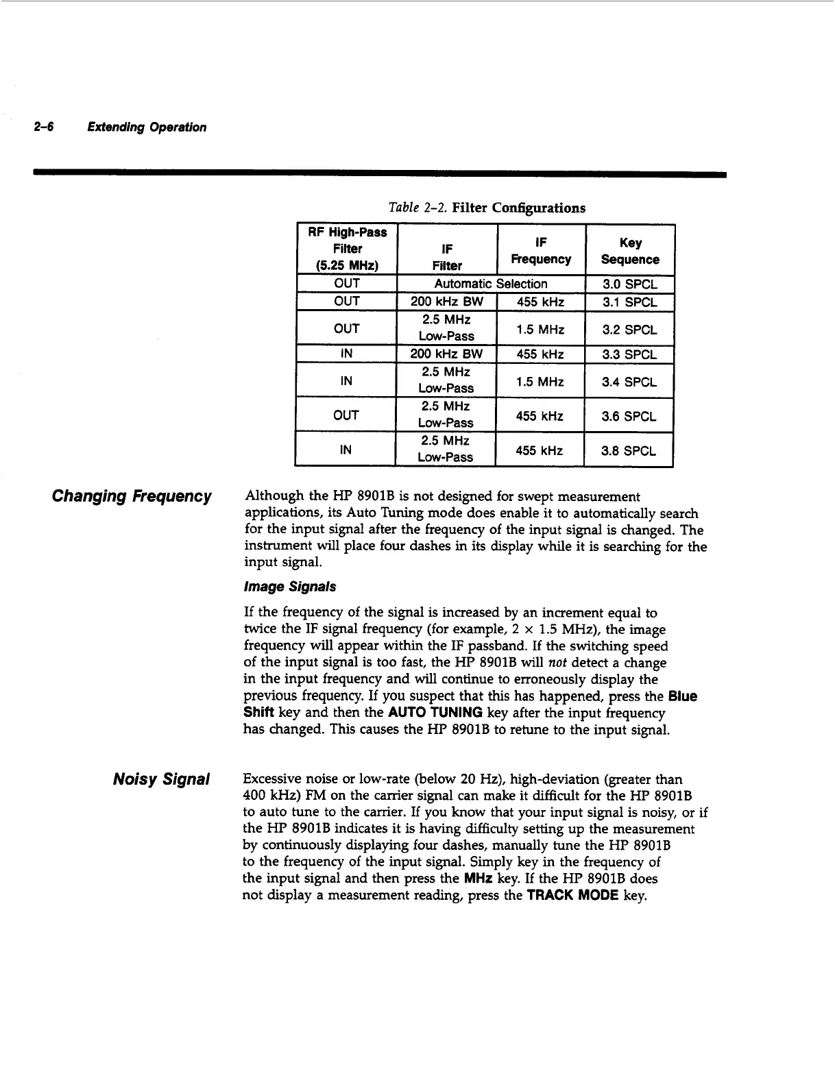has changed. This causes the HP 8901B to retune to the input signal.