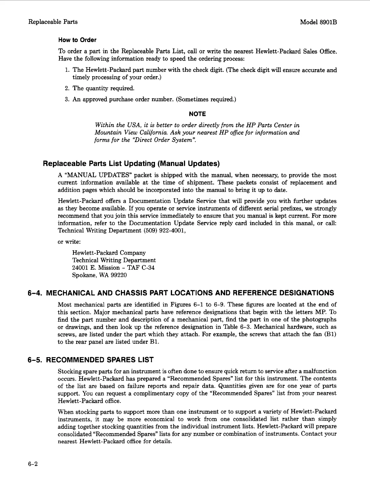 Most mechanical parts are identified in Figures 6-1 to 6-9. These figures are located at the end of