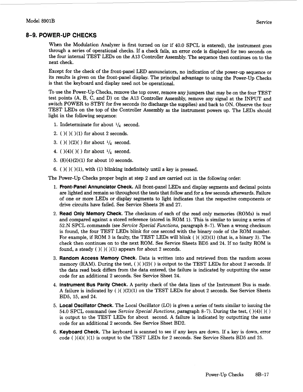 Except for the check of the front-panel LED annunciators, no indication of the power-up sequence