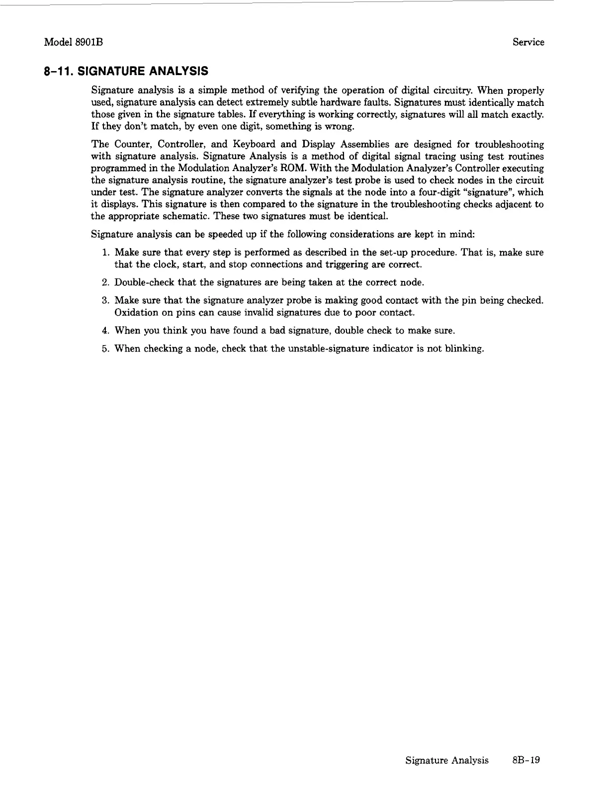 used, signature analysis can detect extremely subtle hardware faults. Signatures must identically match