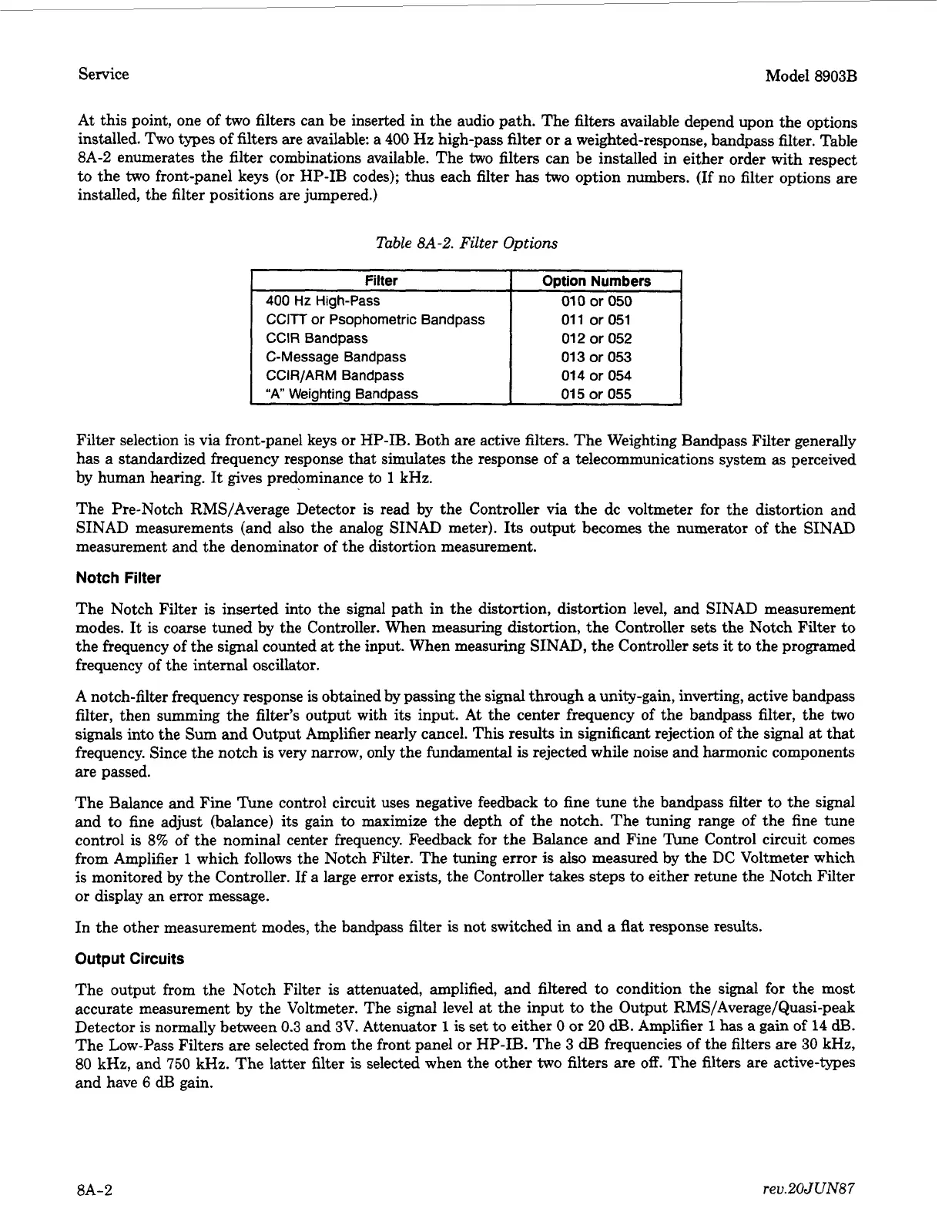 8A-2 enumerates the filter combinations available. The