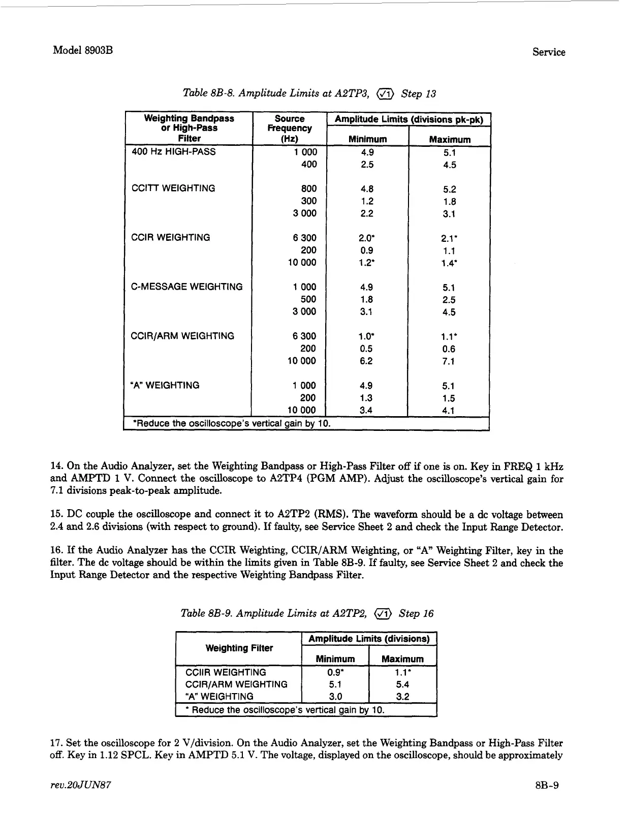 Table 8B-9. Amplitude Limits at A2TP2, Step